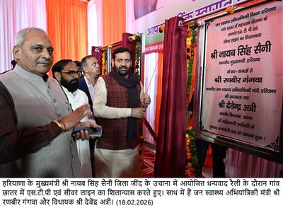 Chandigarh, February 18 — Haryana Chief Minister Sh. Nayab Singh Saini today inaugurated and laid the foundation stones of various development projects worth ₹103.31 crore during the Dhanyavad Rally held in Uchana, giving fresh momentum to the development of the Assembly constituency. The objective of the state government is to strengthen basic infrastructure in every region for the welfare of people.