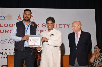 Chandigarh, 24.02.26-: Rotaractor Rishabh was honored with the Star Apheresis Donor Award at the annual award ceremony organized by the Rotary and Blood Bank Society Resource Centre. Along with this, the Voluntary Blood Donation Movement Award was presented to Rotaract District 3080 for spreading awareness about blood donation and providing continuous service in the field.