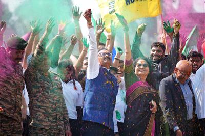 Jalandhar03.03.26-; The festival of colors at Lovely Professional University this year carried a profound message of gratitude and national pride. While the campus came alive with vibrant hues, music, and celebration, the spirit of the occasion was dedicated to the brave soldiers who safeguard the nation’s borders. In a heartfelt collective tribute, - “Udayein Ek Mutthi Gulaal Shaheedon Ke Naam”, students, faculty, and staff raised a handful of red gulaal toward the sky, symbolically saluting the armed forces. The gesture served as a powerful reminder that the freedom to celebrate festivals in peace is secured by the courage and sacrifices of the nation’s soldiers.