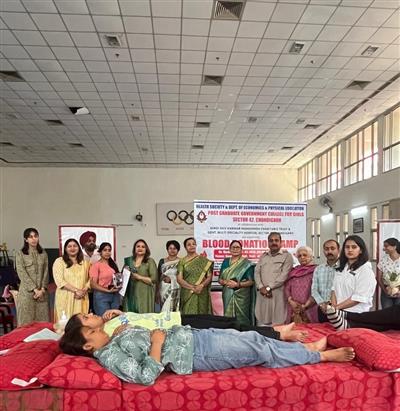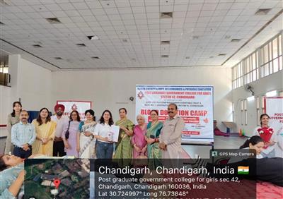 CHANDIGARH, 12.03.26-Under the able guidance of Principal Prof. Dr. Binu Dogra, the Health Society, Department of Economics, and Department of Physical Education of Post Graduate Government College for Girls, Sector-42, Chandigarh organized a Blood Donation Camp in the college premises in collaboration with Government Multi-Specialty Hospital, Sector-16, Chandigarh and Shiv Kanwar Mahasangh Charitable Trust.