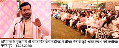 Chandigarh, March 15 – Haryana Chief Minister Sh. Nayab Singh Saini said that advocacy is not merely a means of livelihood, but a powerful responsibility towards justice, humanity, and public service. He stated that lawyers are important pillars of the democratic judicial system, who not only play a crucial role in ensuring justice for the weak, deprived, and needy sections of society, but also contribute significantly to social change, the establishment of moral values, and nation-building.