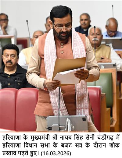 Chandigarh, March 16 – Haryana Chief Minister, Sh. Nayab Singh Saini, while reading the obituary resolutions during the ongoing Budget Session of the Haryana Vidhan Sabha on Monday, expressed deep sorrow over the demise of Smt. Prem Kaur Kalyan, mother of Speaker, Haryana Vidhan Sabha, Sh. Harvinder Kalyan, and the death of seven people in an accident at a construction site in Gurugram. He expressed his condolences to the bereaved families.