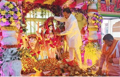 हिसार, 21.03.26-- प्रयाग गिरी शिवालय मंदिर ट्रस्ट में चैत्र नवरात्रि के तीसरे दिन मां दुर्गा जी के तृतीय स्वरूप मां चंद्रघंटा की पूजा-पाठ शिवालय ट्रस्ट के प्रधान बजरंग गर्ग ने की। जिसमें भारी संख्या में धर्म प्रेमियों ने भाग लिया। शिवालय ट्रस्ट के प्रधान बजरंग गर्ग ने कहा कि मां दुर्गा जी के तृतीय स्वरूप मां चंद्रघंटा साहस, शक्ति और शांति का प्रतीक है। माता के मस्तक पर चंद्र के आकार का अर्धचंद्र होने के कारण होने चंद्रघंटा कहा जाता है। माता जी की आराधना से भक्तों में निर्भयता, बल और तेज का संचार होता है। माता अन्याय के विनाश और भक्तों के निर्भयता सुख शांति प्रदान करती है। बजरंग गर्ग ने कहा कि पौराणिक कथा के अनुसार महिषासुर नाम के एक राक्षस ने देवराज इंद्र का सिंहासन हड़प लिया था। महिषासुर स्वर्गलोक पर राज करना चाहता था उनकी यह इच्छा जानकर देवता चिंतित हो गए। जिसके बाद वे अपनी इस परेशानी के लिए त्रिदेवी यानी ब्रह्म, विष्णु और शंकर भगवान के पास पहुंचे। तब माता पार्वती ने दुष्टों का सहारा के लिए यह रूप धारण किया और महिषासुर का वध करने के लिए माता ने दस भुजाओं वाला सिहवाहिनी स्वरूप लिया।