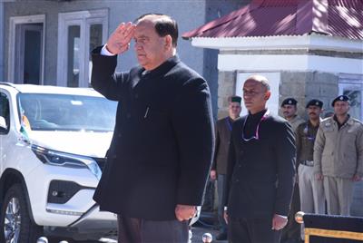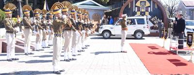 विधान सभा सचिवालय पहुँचने पर गेट नं0 1 पर सलामी लेते हि0प्र0 विधान सभा अध्यक्ष कुलदीप सिंह पठानियां।