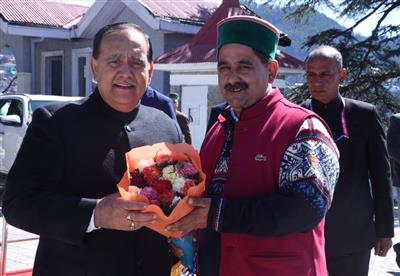 SHIMLA,दिनाँक : 21-03-2026-बजट सत्र (चरण दो) के चौथे दिन की कार्यवाही का संचालन करने विधान सभा सचिवालय पहुँचे हि0प्र0 विधान सभा अध्यक्ष कुलदीप सिंह पठानियां का पुष्प गुच्छ भेंट कर कौंसिल चैम्बर के बाहर गेट नं0 1 पर स्वागत करते उप-मुख्य सचेतक हि0प्र0 सरकार केवल सिंह पठानियां।
