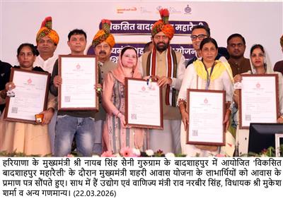Addressing the Viksit Badshahpur Maharally and House allotment programme in village Kakrola (Badshahpur Assembly constituency, Gurugram), the Chief Minister said that Badshahpur has emerged as a strong example of this development journey, where promises have been effectively converted into concrete outcomes.