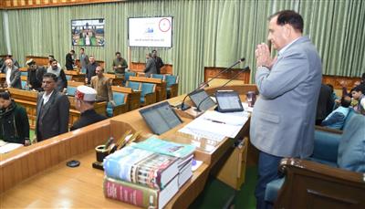 बजट सत्र (चरण दो ) के 12वें दिन की कार्यवाही का संचालन आरम्भ करने से पूर्व सदन के अन्दर दोनों हाथ जोड़कर सदस्यों का अभिवादन स्वीकार करते हि0प्र0 विधान सभा अध्यक्ष कुलदीप सिंह पठानियां