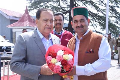 बजट सत्र (चरण दो ) के 12वें दिन की कार्यवाही का संचालन करने विधान सभा सचिवालय पहुँचने पर हि0प्र0 विधान सभा अध्यक्ष कुलदीप सिंह पठानियां का कौंसिल चैम्बर के बाहर गेट नं0 1 पर पुष्प गुच्छ भेंट कर स्वागत करते उप- मुख्य सचेतक हि0प्र0 सरकार केवल सिंह पठानिया।
