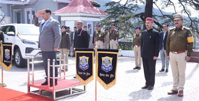 SHIMLA,01.04.26-बजट सत्र (चरण दो ) के 12वें दिन की कार्यवाही का संचालन करने विधान सभा सचिवालय पहुँचने पर गेट नं0 1 पर सलामी लेते हि0प्र0 विधान सभा अध्यक्ष कुलदीप सिंह पठानियां