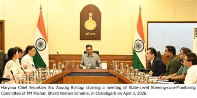 Chandigarh, April 3: Haryana Chief Secretary Sh. Anurag Rastogi, on Friday, chaired a high-level meeting of the State Level Steering-cum-Monitoring Committee (SLSMC), where the panel approved a budget of ₹747 crore for the Financial Year 2026–27 under the Pradhan Mantri Poshan Shakti Nirman Scheme — a flagship programme aimed at strengthening nutritional support for school children across the state.