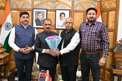 Vikram Sharma, the newly appointed Chairman of the Himachal Pradesh State Cooperative Development Federation (HIMCOFED), called on Chief Minister Thakur Sukhvinder Singh Sukhu here today and expressed his gratitude for the appointment. The Chief Minister extended his best wishes to him.