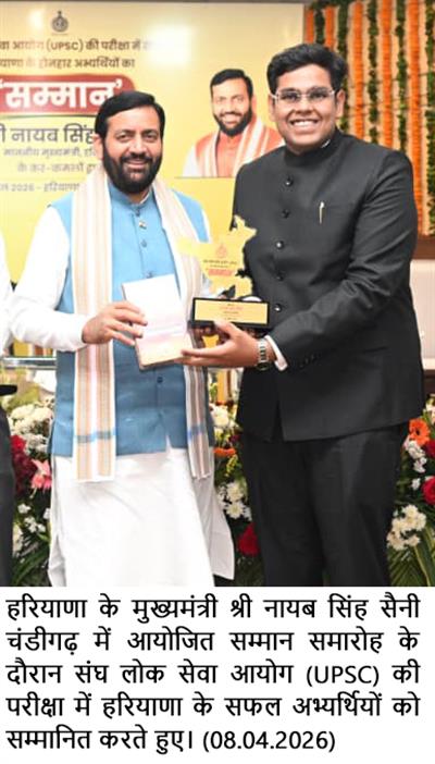 He especially encouraged Akansh Dhull, who secured the 3rd rank in the UPSC Civil Services Examination, along with 77 successful candidates from Haryana. He emphasized that the Indian Administrative Service is not merely a job but a responsibility, a duty, and a platform for public service.