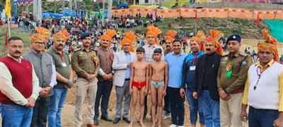 घुमारवीं (बिलासपुर), 08 अप्रैल: राज्य स्तरीय ग्रीष्मोत्सव घुमारवीं-2026 के अंतर्गत आज दंगल (कुश्ती प्रतियोगिता) का आयोजन मेला मैदान में किया गया। कार्यक्रम में पुलिस अधीक्षक संदीप धवल बतौर मुख्यातिथि जबकि डीएसपी मदन धीमान विशिष्ट अतिथि के तौर पर मौजूद रहे। मेला कमेटी के अध्यक्ष एवं एसडीएम घुमारवीं गौरव चौधरी ने मुख्यातिथि का स्वागत किया।