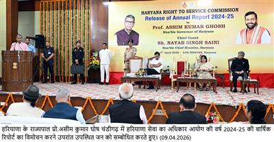 Chandigarh, April 9: Haryana Governor Prof. Ashim Kumar Ghosh said that the state ranks among the leading performers in the country in delivering government services to citizens within a stipulated time frame, which is a matter of pride for all of us.