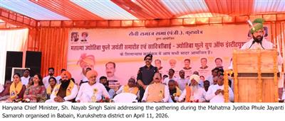 The Chief Minister was addressing a function in Babain, Kurukshetra, organised by Saini Sabha, Kurukshetra, on the occasion of Mahatma Jyotiba Phule Jayanti and the foundation stone-laying ceremony of the Savitribai Jyotiba Phule Group of Institutions. Agriculture and Farmers' Welfare Minister, Sh. Shyam Singh Rana was also present.
