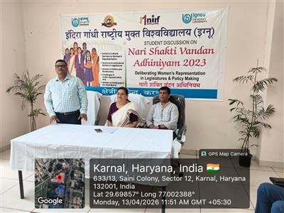 Karnal, April 13, 2026-A grand program was organized by the Regional Centre Karnal of Indira Gandhi National Open University on the occasion of the Nari Shakti Vandan Act 2023. The event aimed to promote women empowerment.