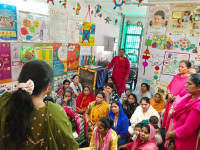 At Mouli Colony, an informative lectures were delivered by the ANM and LHV highlighting the importance of maternal and child health, followed by a Godh Bharai ceremony to support and celebrate expectant mothers. An additional awareness session on minimizing screen time among children was conducted at RC Dhanas-2, where beneficiaries were sensitized about engaging children in creative activities and using locally available materials for making DIY toys at home.