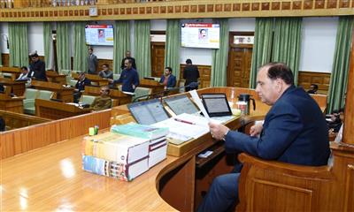 DHARAMSHALA,01.12.25-शीतकालीन सत्र के चौथे दिन सदन के अन्दर विधान सभा की कार्यवाही का संचालन करते विधान सभा अध्यक्ष कुलदीप सिंह पठानियां।